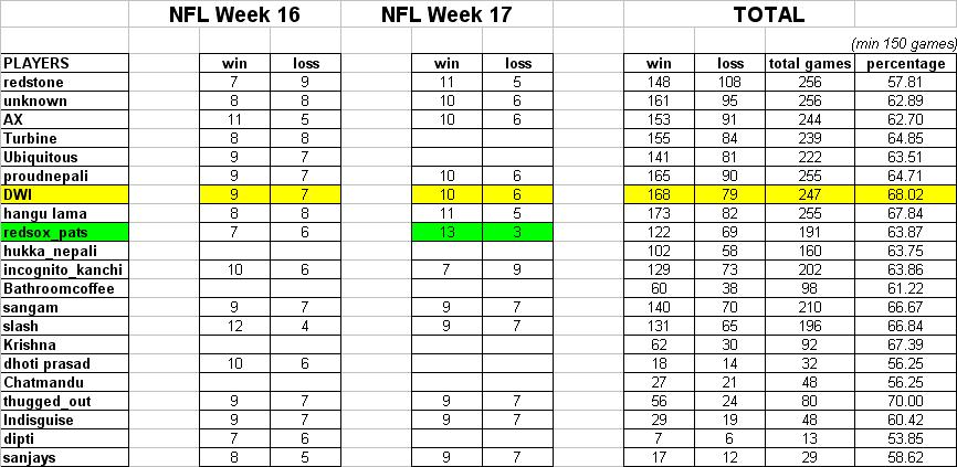 on this, and AX bru, week 16th mine is all 0 0 whyyy. plus les do 17th week! then post season start