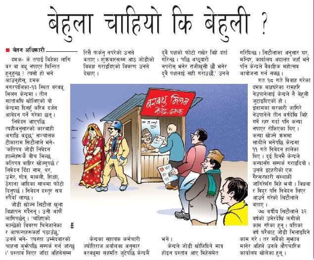 I had a couple of proposals from other than Nepalese but I want someone from Nepal. I think this might be me avoiding future unseen disaster and I also expressing feeling would be easy with nepalese. And do not hate for me saying this that I want someone who has been living in US for a couple of years. There is a lot share but I will see if someone will response me or direct me where would be better place to try.