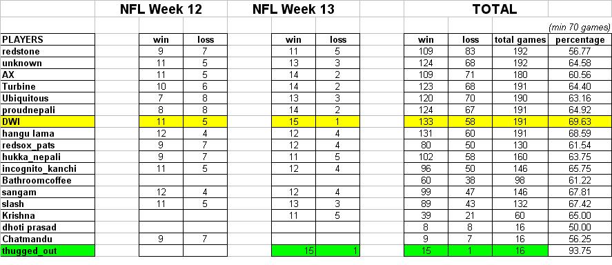 DWI said "As the season goes to end, you will see better prediction as people will now have idea of each and every team and their record"