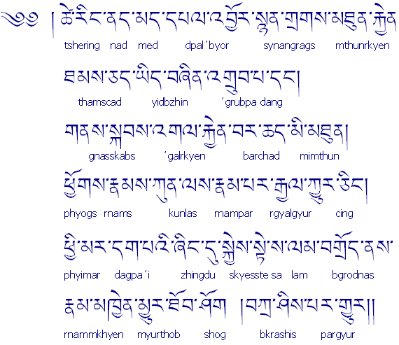 Analogous Translation: May all obstacles and misfortune be eliminated and may long life, healthiness, prosperity and honor increase as requested. May all creatures be reborn in paradise in their next life and will go on the stepway to attain the omniscient mental state of Buddhahood.