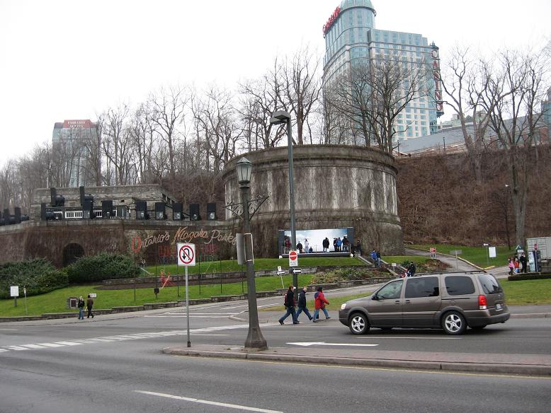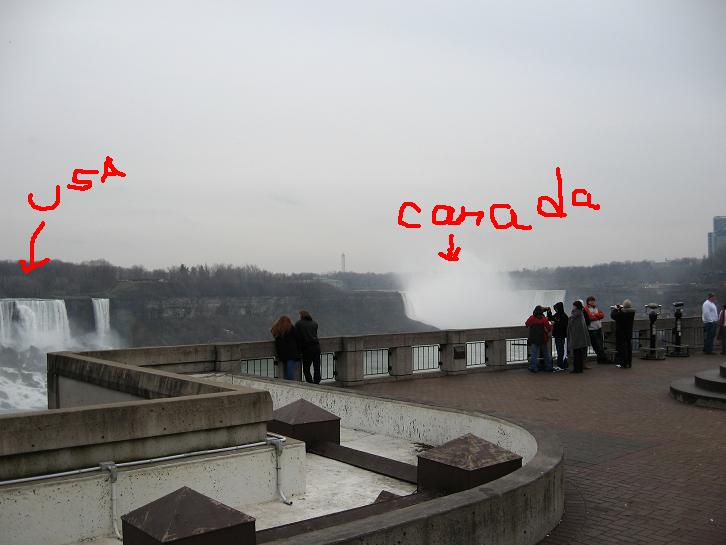 Canadian Falls and Niagara Tower in background, of course with Canadian Maple leaf.