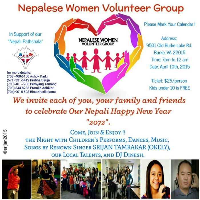 We "Nepalese women volunteer group" invite each of you and your family and friends to celebrate Happy New Year 2072.