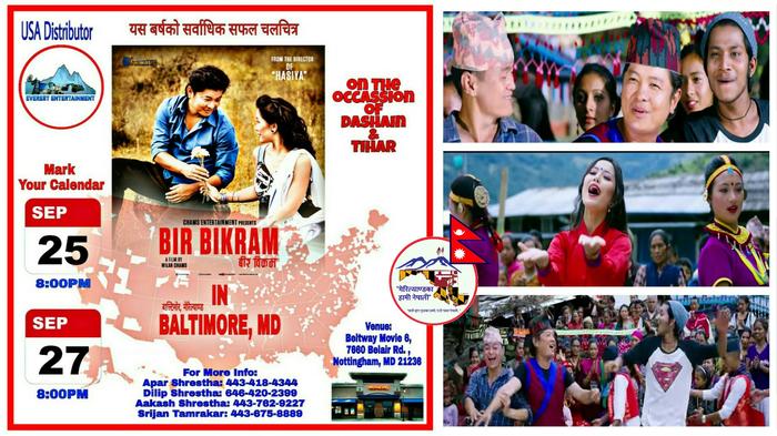 च्याम्स इन्टरटेन्मेन्ट नेपालको निर्माणमा बनेको यस चलचित्रलाई "एभरेस्ट इन्टरटेन्टमेन्ट" को प्रस्तुतिमा हाम्रो यस बाल्टिमोर शहरमा यहि सेप्टेम्बर २५ तारिख आईतवार र २७ तारीख मंगलबार साँझ ८:०० बजेका शो: हरुमा स्थानीय Beltway Movie 6, 7660 Belair Road, Nottingham, MD 21236 को भब्य सिनेमा हलमा प्रदर्शन गरिने भएको छ भने अमेरिकाका अन्य नेपाली समुदायहरुको बाक्लो उपस्थिति रहेका सबै राज्यका शहरहरुमा पनि क्रमशः प्रदर्शनी गरिने पक्का भएको छ।
