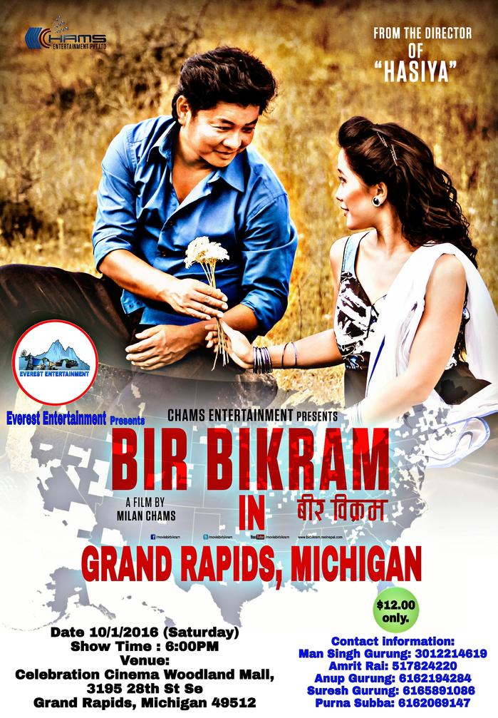 यही आउँदो बडा दशैं तथा दिपावलीको पावन अवसरमा, यस बर्षको सुपर हिट नेपाली कथानक चलचित्र "वीर बिक्रम" अब चाँडै मिचिगन राज्यमा भब्य प्रदर्शन हुने भएको छ।