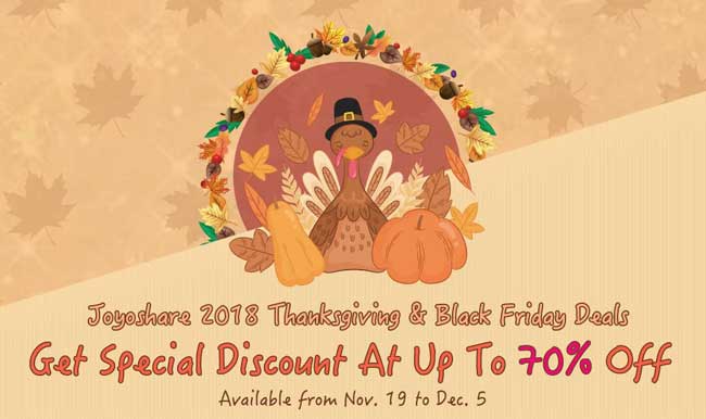 Joyoshare plans to give away free license and super offers at its unprecedented 2018 Thanksgiving deals to satisfy both new and old customers to the greatest extent. All products listed in this Thanksgiving event show can be got at different discounts.