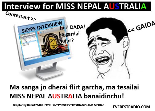 NOTE: The opinions here represent the opinions of the individual posters, and not of Sajha.com. It is not possible for sajha.com to monitor all the postings, since sajha.com merely seeks to provide a cyber location for discussing ideas and concerns related to Nepal and the Nepalis. Please send an email to admin@sajha.com using a valid email address if you want any posting to be considered for deletion. Your request will be handled on a one to one basis. Sajha.com is a service please don't abuse it. - Thanks.